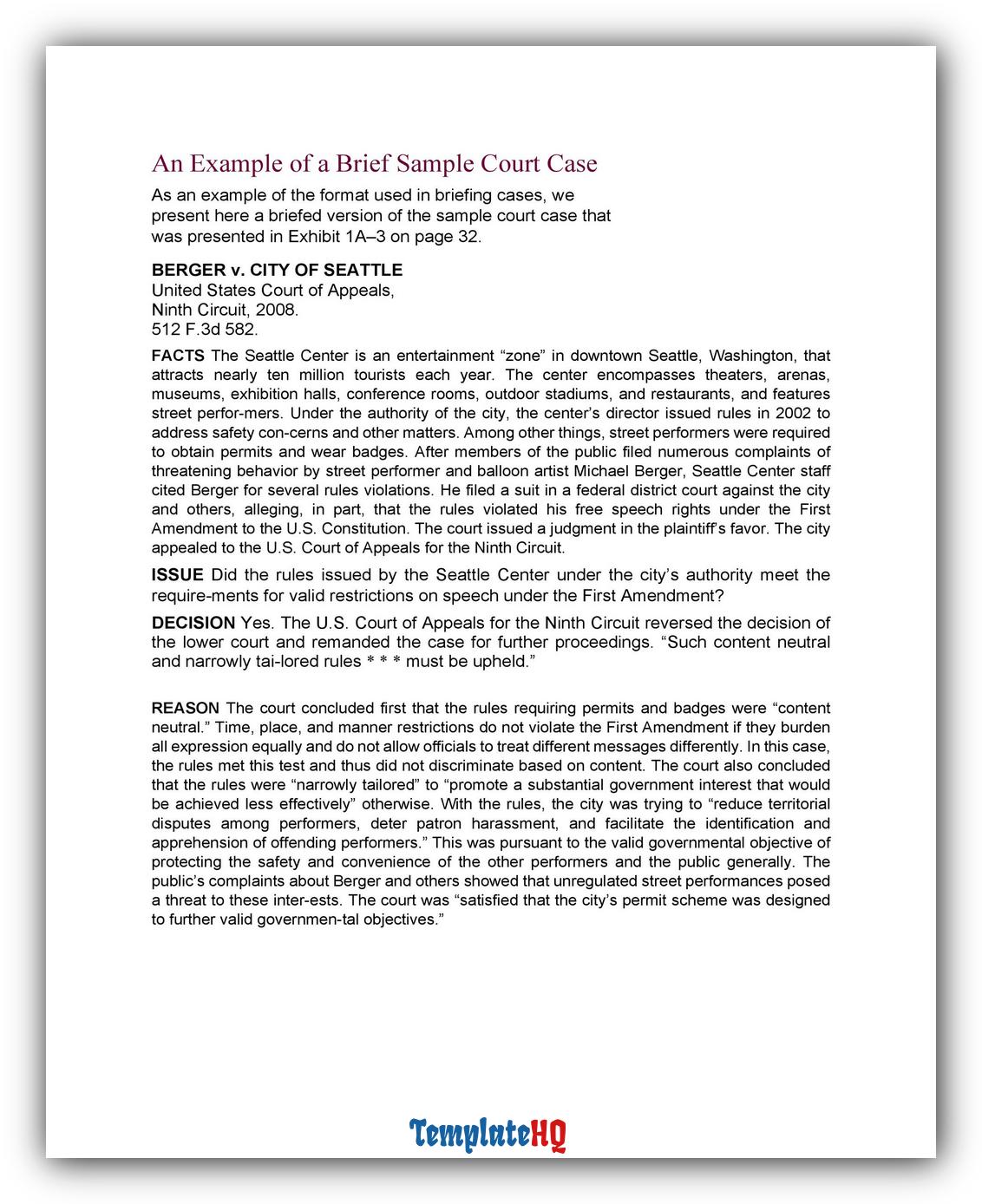Before practicing for writing case brief, you should take a look on case brief examples printable which you can find through the internet. You can print several of them, then compare to come with the best method on how you’re going to write yours. There are many ways you can follow, but for general, here they are: