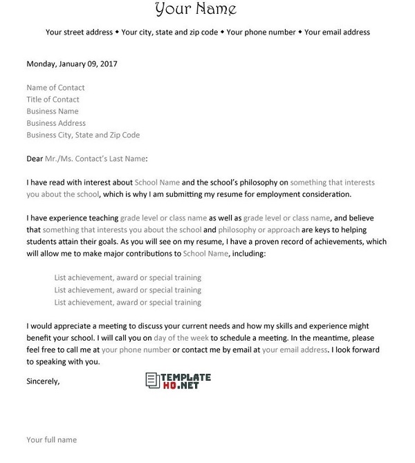 At last, don’t forget to write about how the company can reach you. Include your contact info such as address, email, or telephone number.