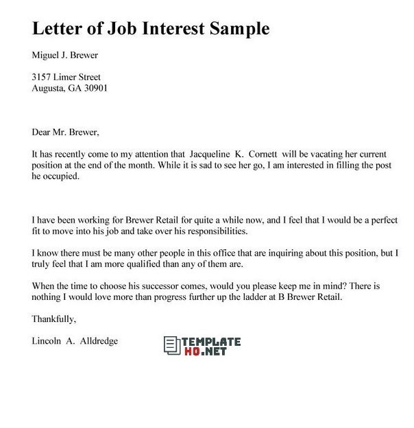 As namely, an interest letter is made to show that you’re interested in a particular vacancy a company offers. When you send the letter, it means that you want to know further about the job. Or offer your qualities that might meet the job’s criteria. In short, the aim of making a letter of interest is like a job proposal.