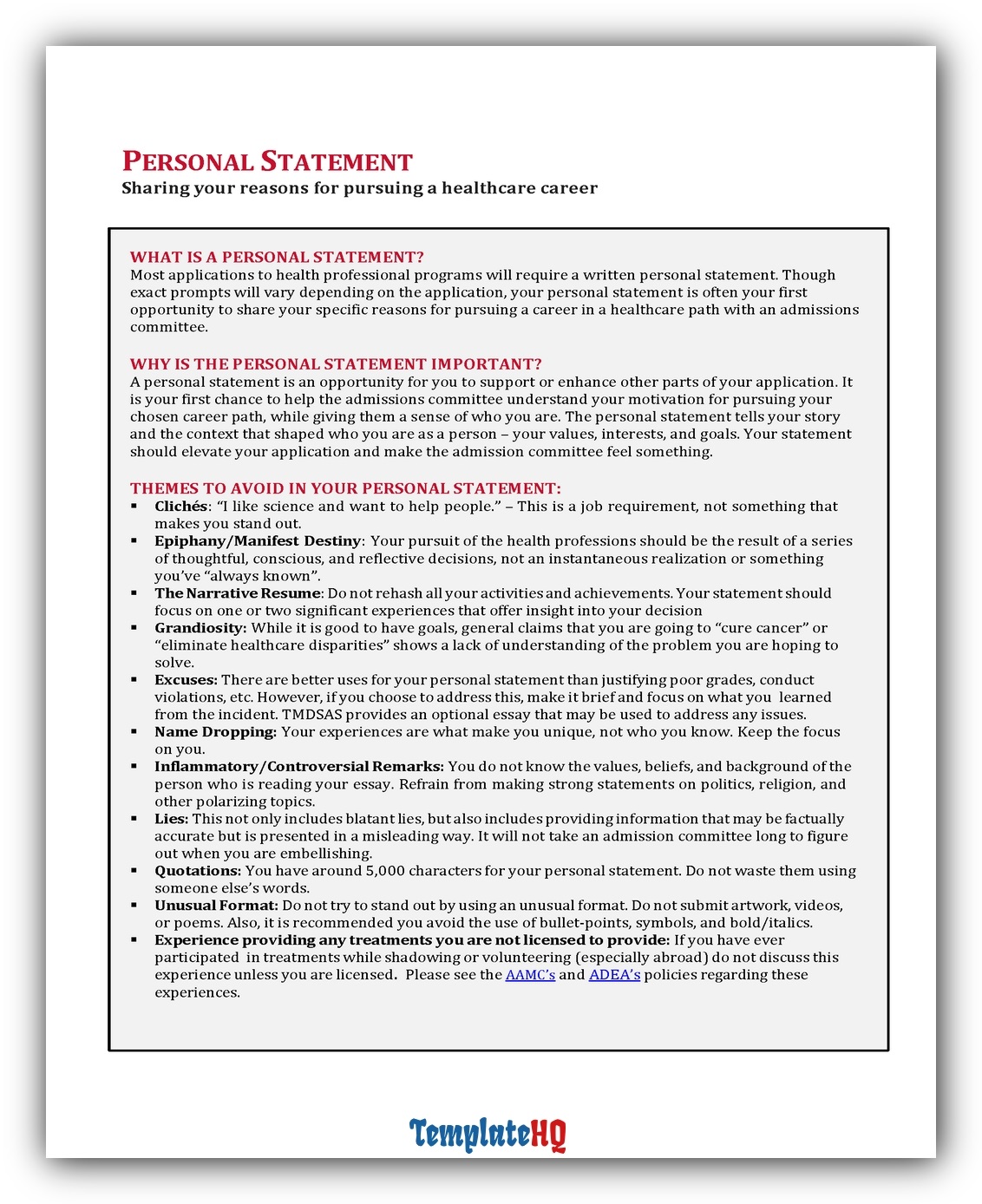 Our personal statement is the first impression that we have with a potential employer. It can be the deciding factor in whether or not our application is read, and it can be a tremendous help to us while we are searching for a job.