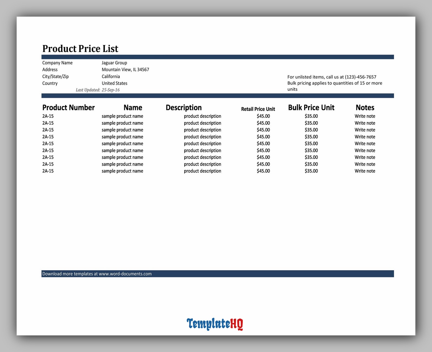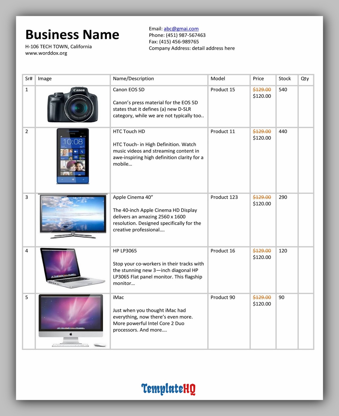 Although it named a price list, it’s not only listing product price, but the product description is also important. The reason is it would give the customer a good understanding of the product and the price listed. Or better yet, you also display the product picture for the customer to see. And another function of this, your customer wouldn’t need to contact you on every occasion and ask about the detail on the product.