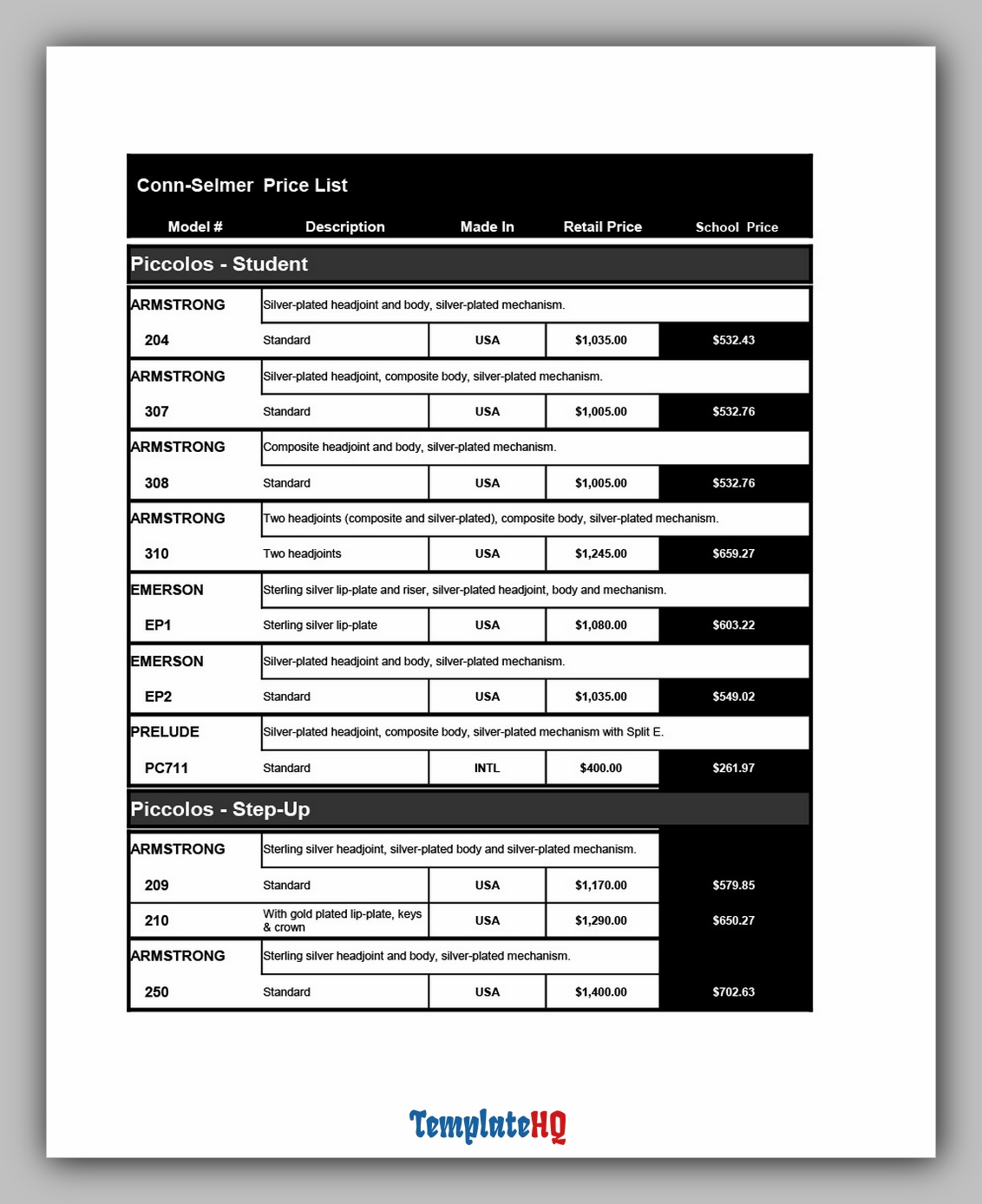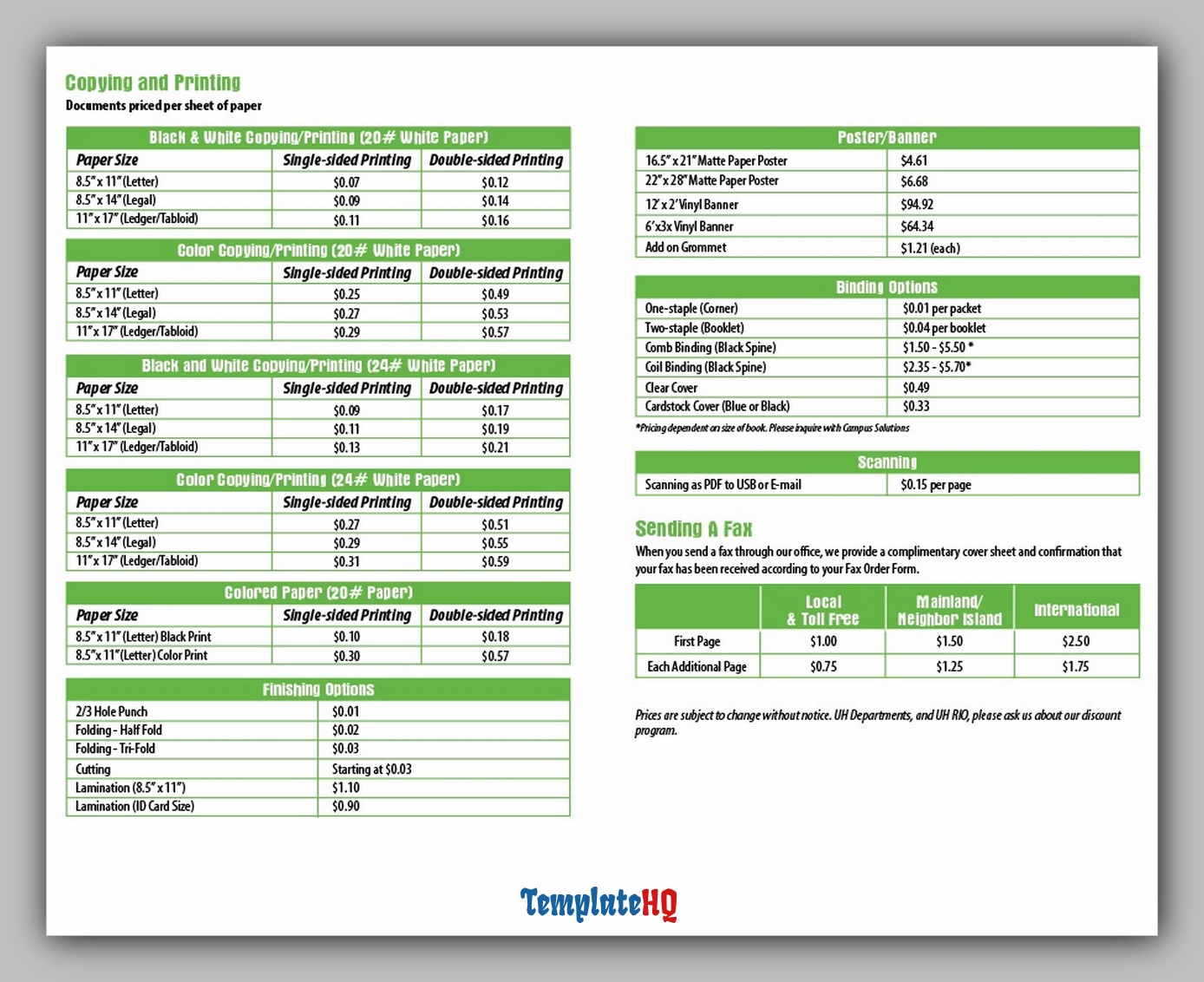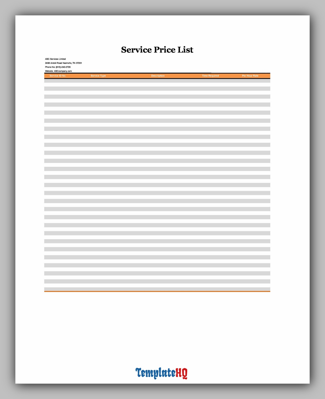 Make sure to make the price list template in a simple design. And the ideal template is the linear list. The reason is that it would be easier to look and your customer wouldn’t get difficulty if they want to track up and down while choosing the product. Also, from the other business owners experience, if you put a complicated price list could drift the customer away because they couldn’t read the list clearly in the first three seconds. For more understanding, you could look at the sample templates below.