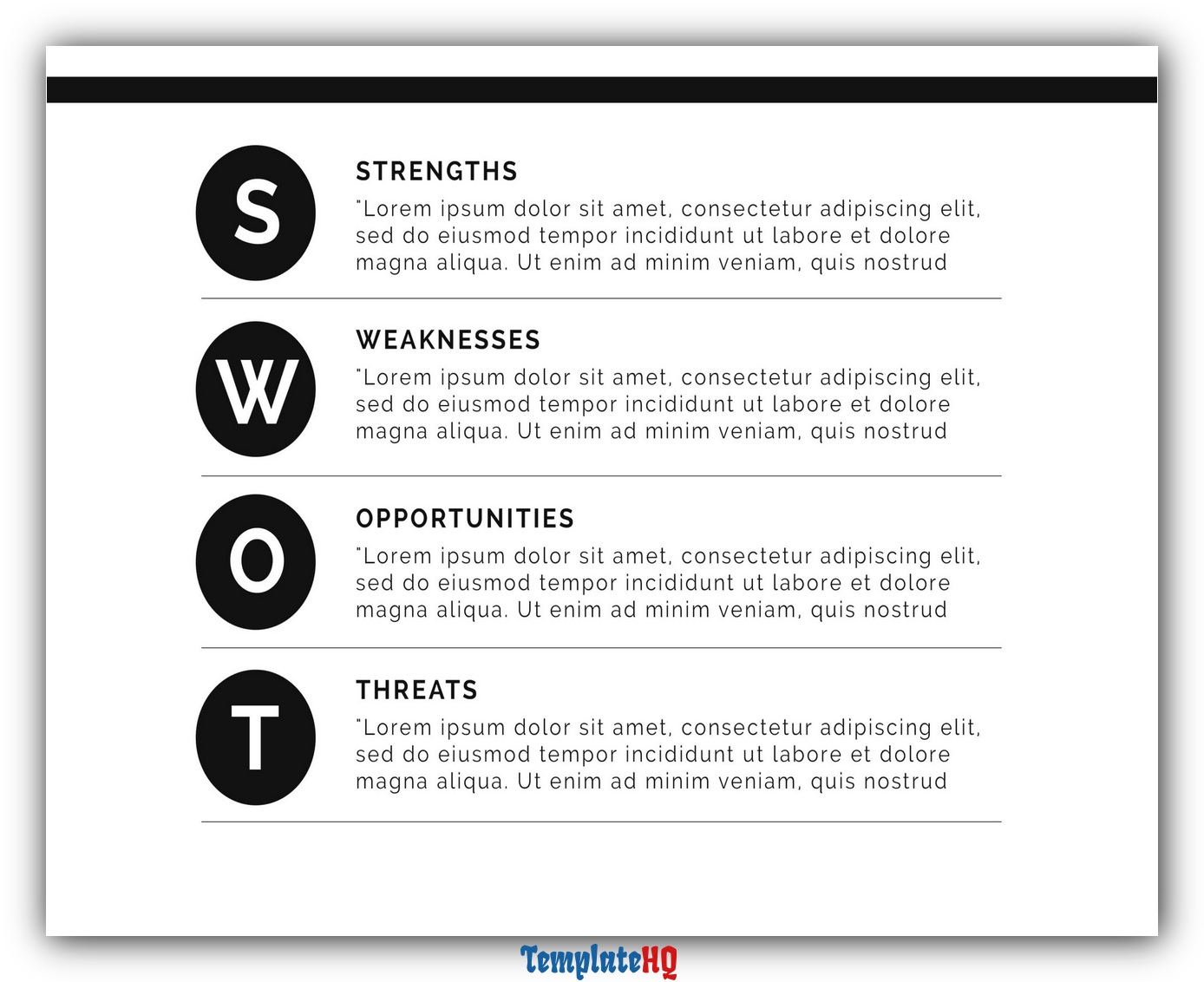 Further, the table style pushes the writer to make the sentence shorter. It would make the report more simple. This printable SWOT analysis template excel is editable too. So you can skip the making table step.