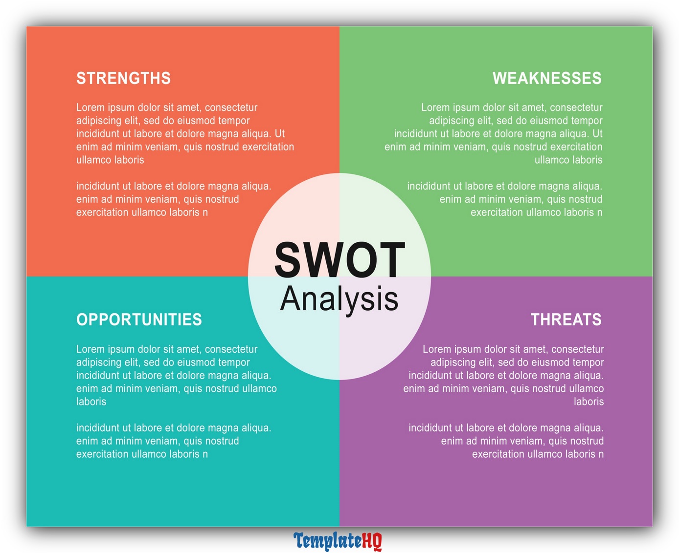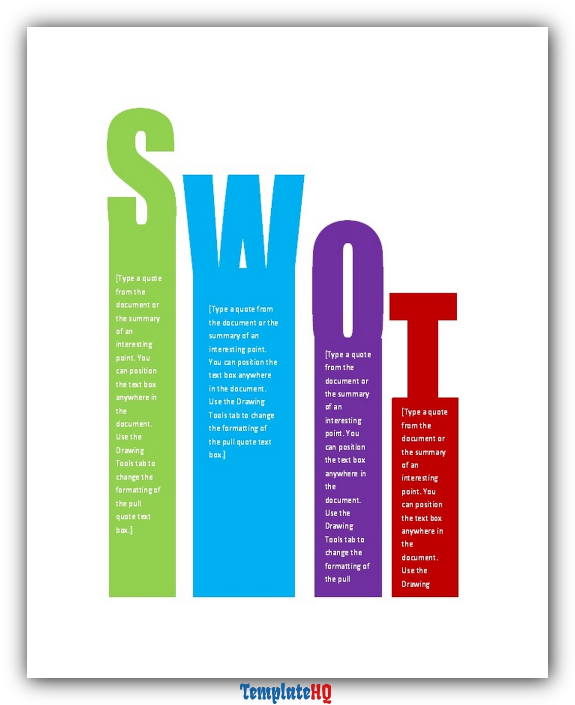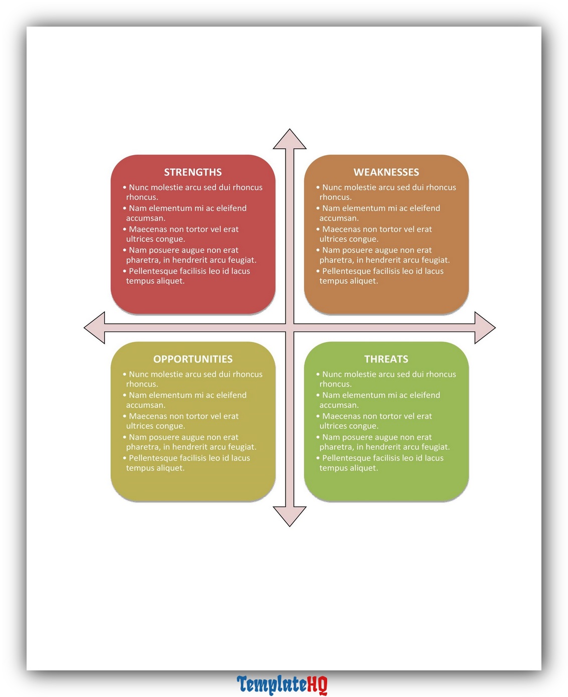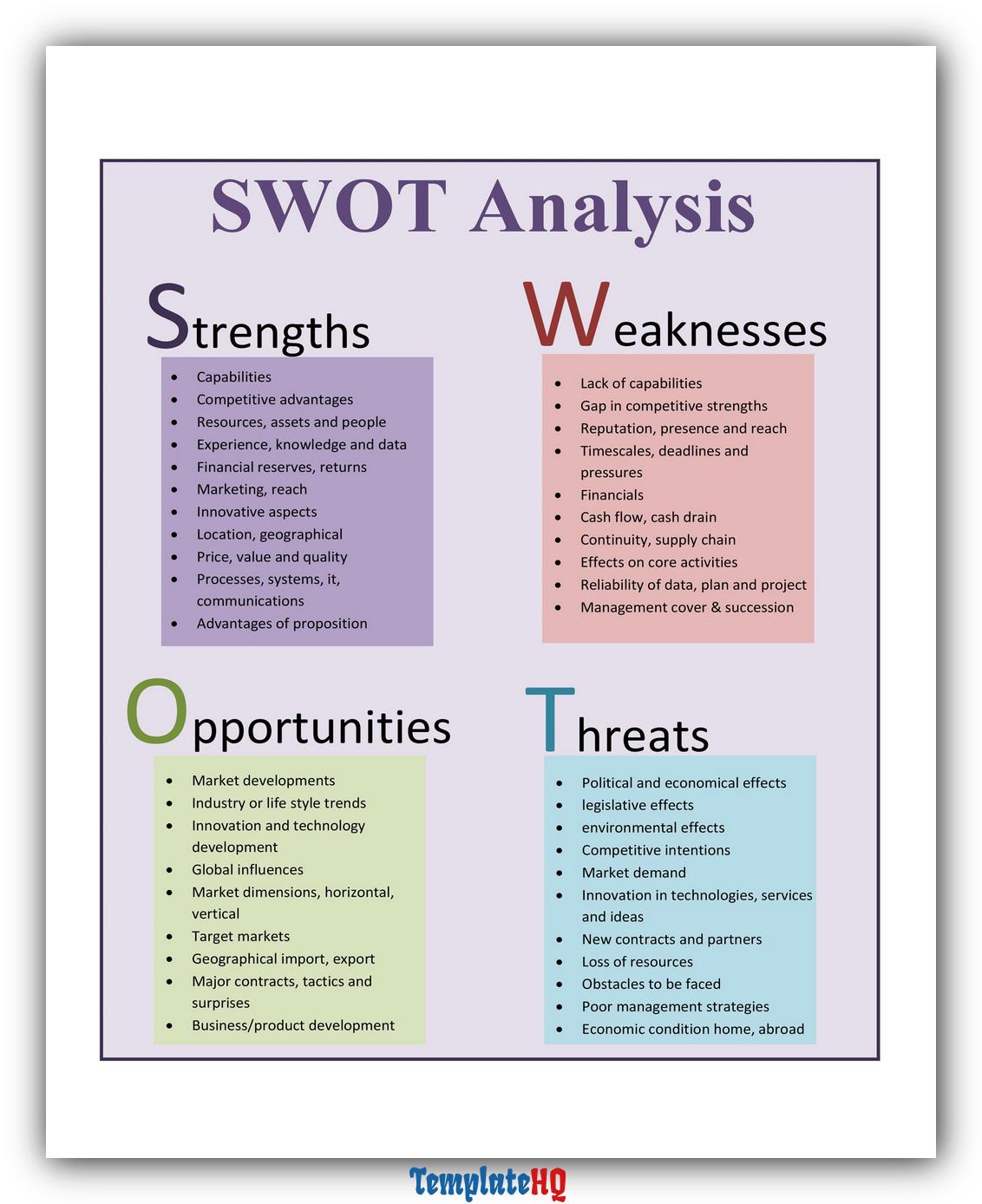 The if you want to make it bigger for presentation, change the paper size to A3 or A2. This editable SWOT analysis template excel can resize to the desired size. So the printing quality will always good.