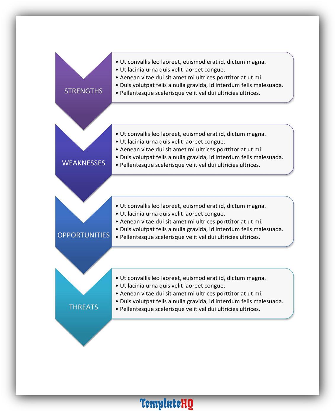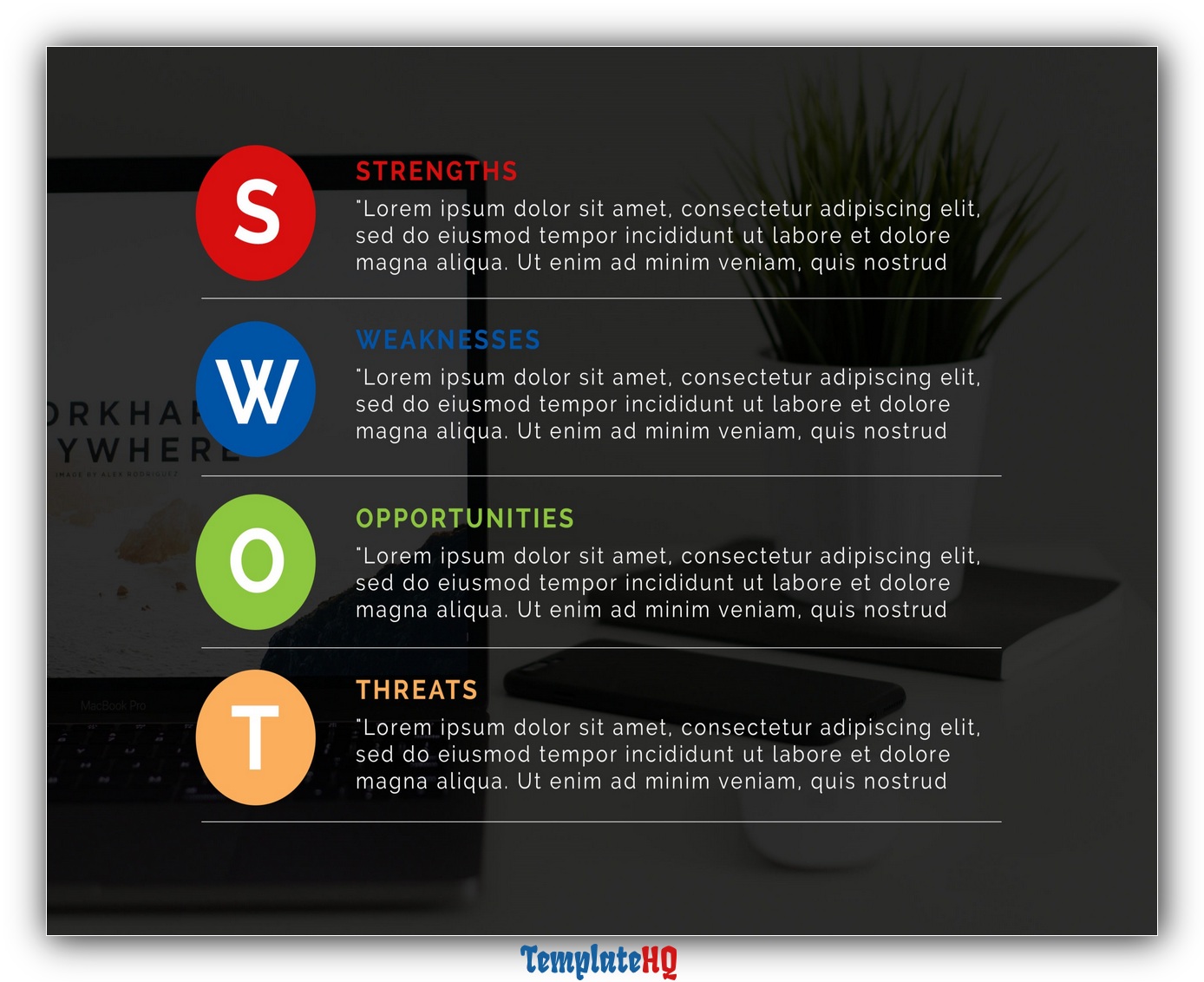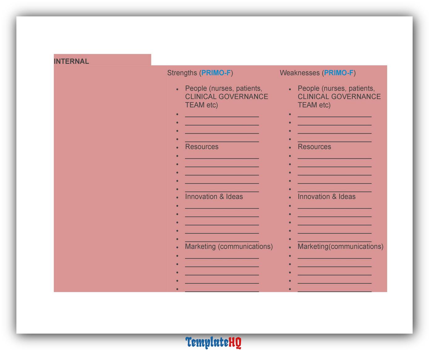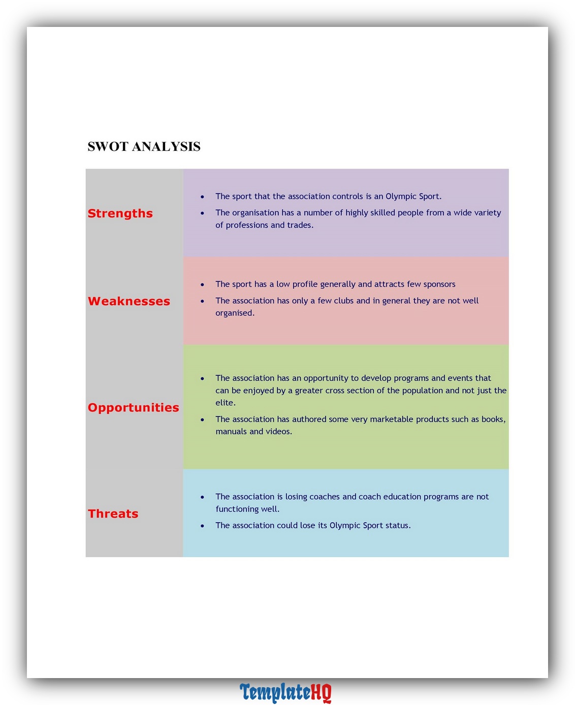 The if you want to make it bigger for presentation, change the paper size to A3 or A2. This editable SWOT analysis template excel can resize to the desired size. So the printing quality will always good.